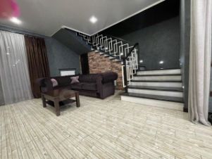 Отделка дома пол 1го этажа и все с/у из керамогранита, пол 2го этажа немецкий ламинат, на стенах немецкие обои, новая мебель, сантехника Grohe, Hansgrohe, Am.Pm.