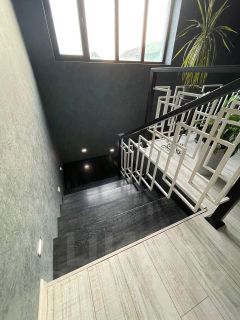 - лестница на 2 этаж ж/б, монолитная, отделка ясенем + бук;