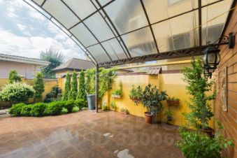 Плитка на всей территории, место для трех автомобилей под навесом и надежный кирпичный забор обеспечивают безопасность и комфорт.