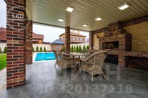Строительство выполнялось с применением бельгийского кирпича в стиле неоклассика. Толщина стен 50 см. В доме пять спальных комнат, три санузла, гардеробная, комната, просторная кухня-гостиная. Система отопления теплый пол. Дом оснащен системой видеонаблюдения, интернет, ТВ, охрана, сплит-системы.