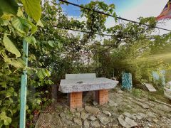 Территория ограждена металлическим забором с фасада, от соседей сеткой-рабицей. Есть стоянка для 2-х автомобилей. Во дворе уличный туалет и душевая, 2 сарая и беседка с естественным озеленением. Замечательный сад с плодовыми деревьями: финики, фундук, грецкий орех, виноград, черешня.