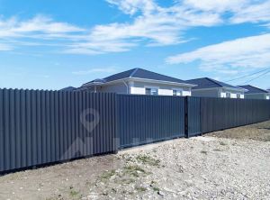 Участок ровный, угловой. Огорожен забором по периметру.Откатные ворота и калитка.