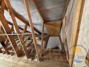 Планировка изолированная, при входе терраса на весь фасад дома, большая гостинная откуда выходят 2 спальни, кухня, совмещённый санузел, на второй этаж ведёт крепкая лестница, мансардный этаж так же планировался для нескольких комнат. Крыша металлопрофиль, капитальная, утеплённая.