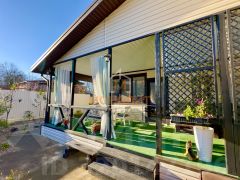 Дом построен из металлокаркаса. Здание установлено на прочном свайном фундаменте и качественно утеплено, что обеспечивает комфортный микроклимат в любое время года. Общая площадь дома составляет впечатляющие 186 квадратных метров. Участок площадью 4,3 сотки полностью благоустроен и оснащен всем необходимым для комфортной жизни. Продуманная планировка включает в себя просторную кухню-гостиную площадью 32 квадратных метра, три уютные жилые комнаты по 16 квадратных метров каждая, две функциональные гардеробные и техническую комнату. Особого внимания заслуживает великолепная веранда площадью 21 квадратный метр, где можно наслаждаться отдыхом на свежем воздухе. В доме реализованы уникальные особенности: установлен стильный камин, в одной из комнат смонтирован экран для домашнего кинотеатра. Качественный современный ремонт создает атмосферу уюта и комфорта. Большая часть мебели остается новым владельцам (по договоренности). На территории участка создана полноценная зона отдыха: оборудован бассейн, обустроена мангальная зона, разбита живописная альпийская горка с цветами. Растут плодовые деревья и кустарники. Все необходимые коммуникации уже подведены: есть электричество, газ проходит по межевой границе, собственная скважина глубиной 34 метра с системой фильтрации и резервный накопитель воды обеспечивают бесперебойное водоснабжение, канализация септик. Отдельно стоит отметить наличие бани с комнатой отдыха, имеющей удобный вход непосредственно из дома. Дом расположен в тихом, спокойном районе с отличной транспортной доступностью - к нему ведет асфальтированная дорога с тротуаром и освещением. Не упустите возможность стать владельцем этого великолепного дома, где уже все готово для комфортной жизни! Звоните прямо сейчас, чтобы узнать все подробности и договориться о просмотре в удобное для Вас время. Мы готовы ответить на все вопросы и организовать оперативный показ объекта. Ваш будущий дом ждет именно вас!