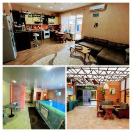 Во дворе есть полностью оборудованная летняя кухня (зона приготовления пищи, мойка, кухонный гарнитур, холодильник, кухонный уголок, сплит система), так же в летней кухне имеется сан узел(туалет, душ), замечательное место встречать большую компанию гостей не заходя в дом, или жарить рыбу на свежем воздухе!
