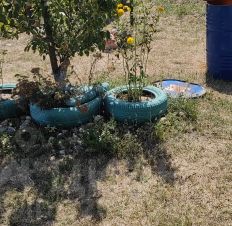 Небольшой молодой сад, яблоня, груша,слива, алыча, виноград, ежевика, малина, крыжовник.
