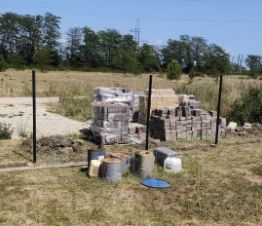 Так же продаются вместе с участком облицовочные блоки 15-16 поддонов. Можно построить капитальный дом.
