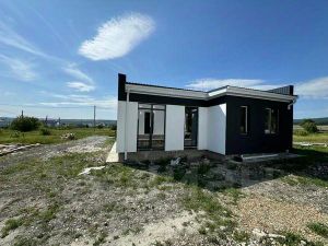 Дом выполнен в современном стиле Hi Tech. Большие панорамные окна, плоская кровля, возможность организовать террасу в торцевой части дома.