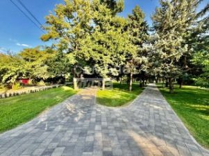 Отдельным зданием к дому примыкает коммерческая недвижимость. 125 квадратных метров помещения на выделенном участке оформленном для коммерческого использования.
