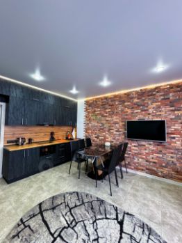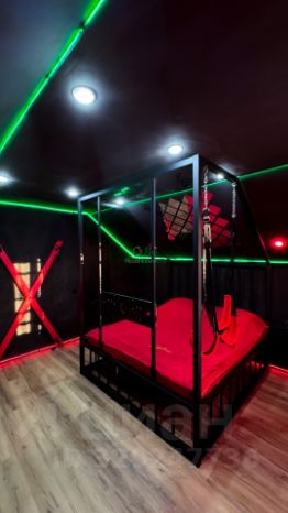Укомплектованная прихожая, оборудованная кухня-гостиная со всей необходимой посудой и техникой, тематическая спальная комната с атрибутикой 18+, совмещенный санузел с тропическим душем.