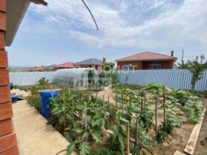 Участок ровный, на нём высажены плодовые и декоративные деревья и кустарники. Также есть теплица.
