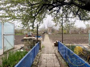 Участок - 8 соток, ровный, обработанный, растут всеразличные деревья и кустарники.