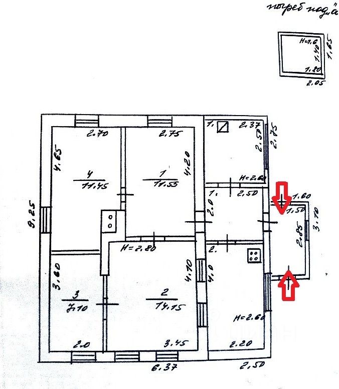 Год постройки 1973, крыша шифер. 1 этаж, высота потолка 2,5 метра. Полы дерево, кухня коридор линолеум, 2 погриба огромный на улице и маленький в доме.