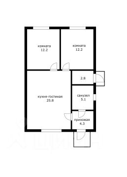 Планировка: 2 спальни, большая кухня-гостиная, санузел и котельная.