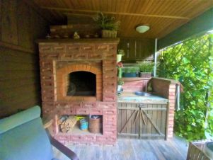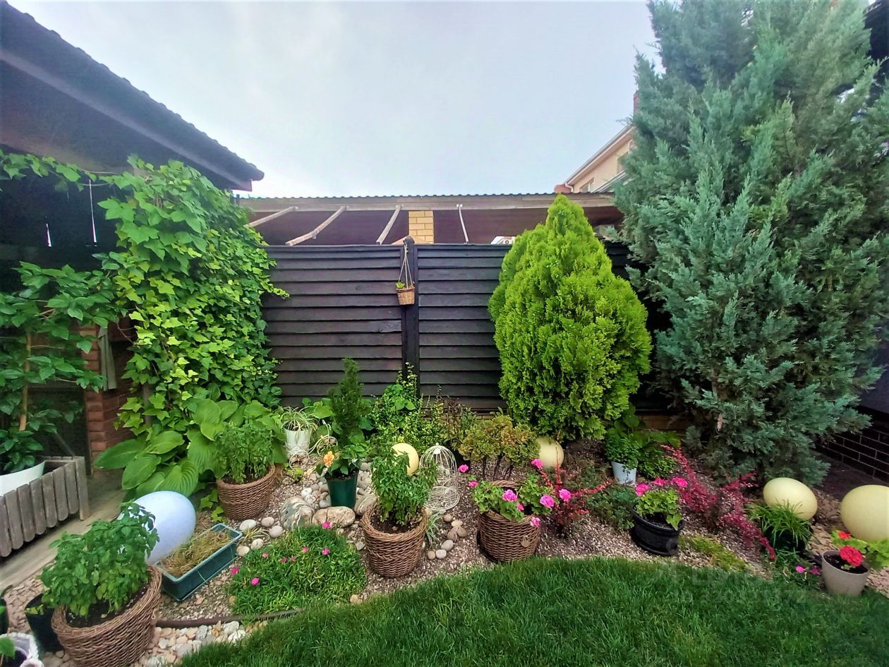 Заднии дворик с газоном и уникальными деревьями создаст атмосферу уединения и релаксации. Также, в таунхаусе есть благоустроенная мангальная зона, где вы сможете насладиться свежим воздухом и приготовить вкусные блюда на открытом огне.