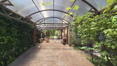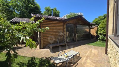 Территория дома утопает в зелени и цветах, также на территории находится спортивная площадка и великолепная баня с террасой.