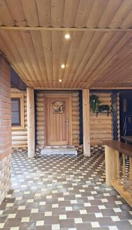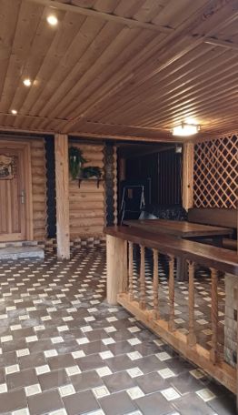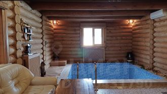 Настоящая русская баня из оцилиндрованного бревна, с бассейном, душевой и комнатой отдыха, отдельным санузлом.