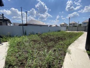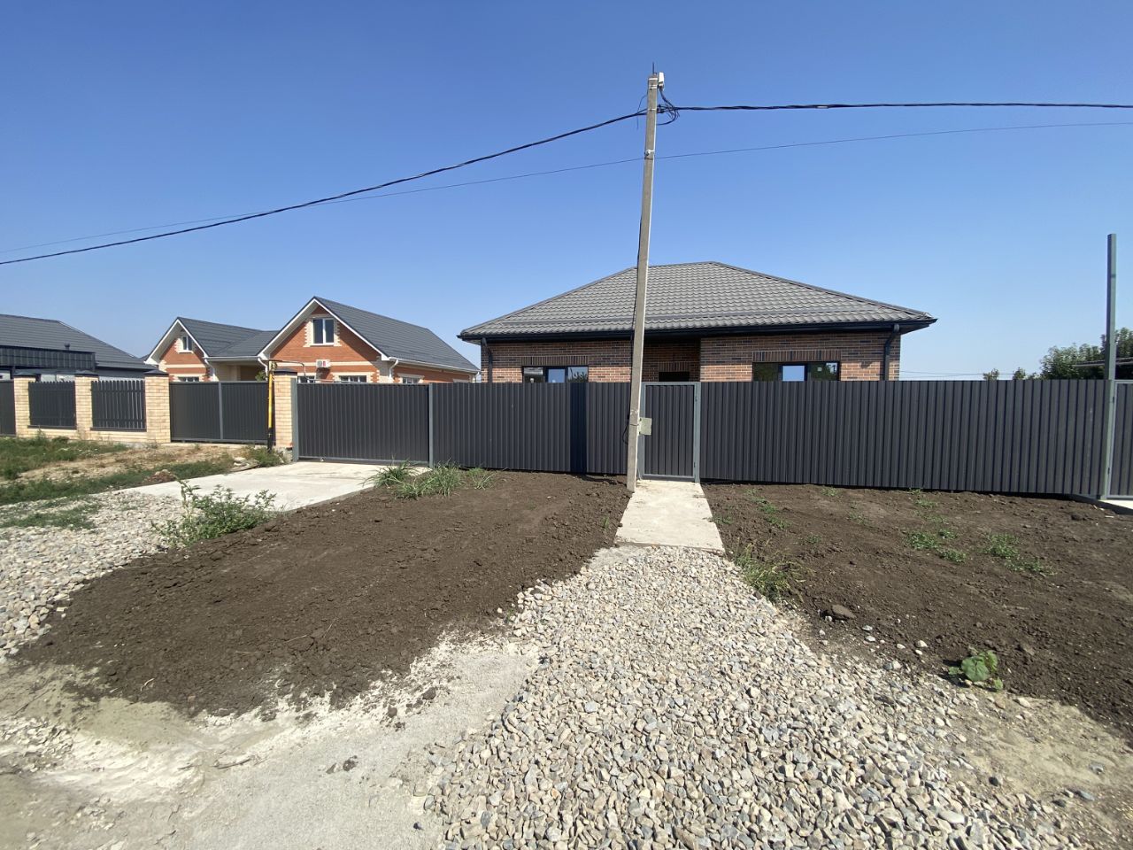 Участок 5 соток земли ИЖС, огорожен по периметру забором из металлопрофиля, заезд для автомобиля и отмостка забетонированы, установлены откатные ворота.