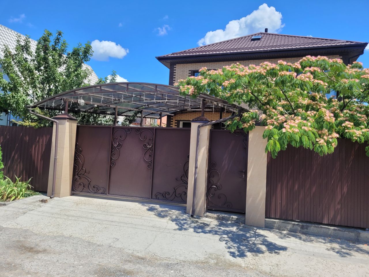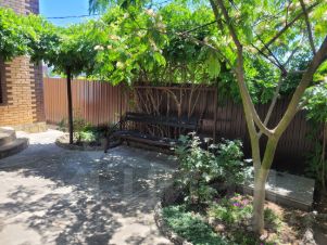 Во дворе навес из поликарбоната, для стоянки автомобиля, беседка для отдыха. Есть место для установки бани или бассейна.
