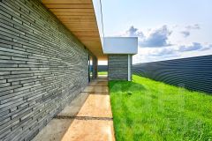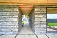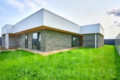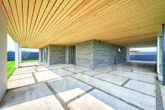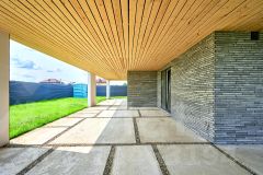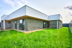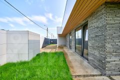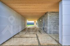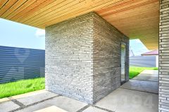 - Внешний фасад облицован эксклюзивной плиткой ручной формовки, колонны и ограждения выполнены из престижного керамогранита крупных размеров