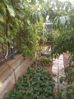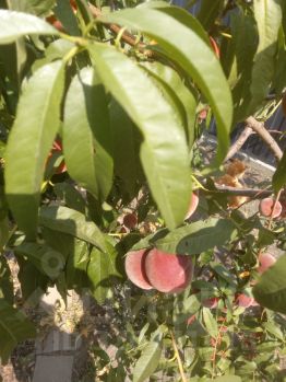 Плодоносящий сад: персики, инжир, хурма, черешня, вишня, гранат, малина, ежевика, смородина, виноград, клубника.