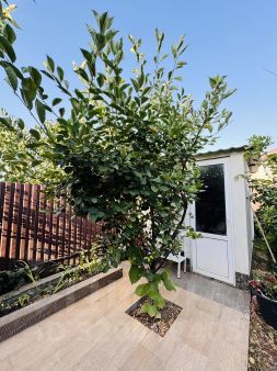 Очень ухоженный сад с плодовыми деревьями хурма, яблоня, слива, отдельное внимание занимает виноград.Отличные семейные соседи.