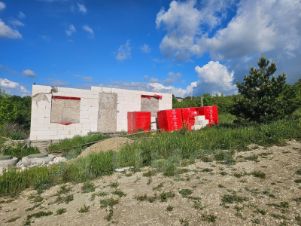 На участке начато строительство дома площадью 100 кв. м из газоблоков — современного, прочного и энергоэффективного материала. Имеется уведомление о строительстве, все документы оформлены в соответствии с требованиями законодательства. Для временного проживания на территории установлена жилая бытовка с необходимыми условиями, что позволяет комфортно организовать процесс достройки.