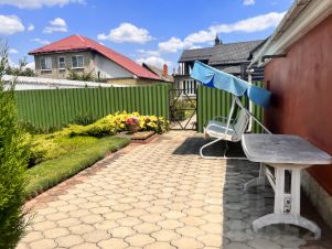 Продается уютный ухоженный дом с евро ремонтом, расположенный на участке 9 соток. Стены шлаколитые, обложенные кирпичом. В доме четыре комнаты, кухня оборудована всем необходимым для комфортного проживания. В доме есть кладовая для хранения консервации. Дом продаётся с мебелью, кроме одной спальни.