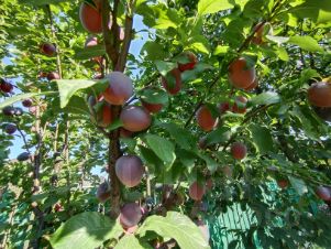 Ухоженный двор, вымощенный плиткой. В саду растут плодоносящие деревья, слива, персики, черешня, яблоки, которые дают хороший урожай.