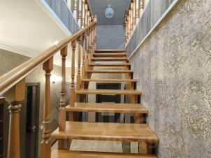 На первом этаже просторная кухня гостиная, две спальные комнаты, санузел, гардеробная, терраса. На втором этаже гардеробная, большая комната, которую можно разделить на две комнаты.