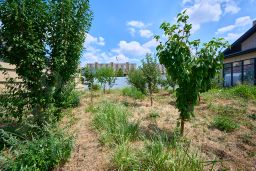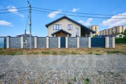Участок огорожен кирпичным забором, автоматические ворота, бетонированная площадка с навесом для нескольких автомобилей. Имеется место для бассейна, зоны барбекю и своего небольшого сада.
