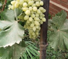 В огороде много молодых плодовых деревьев и большие виноградники.