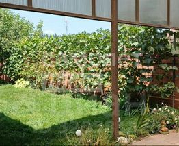 Уютная летняя кухня и хозяйственные постройки для хранения инструментов. И во дворе благоустроенные туалет и летний душ.