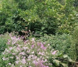 В огороде много молодых плодовых деревьев.