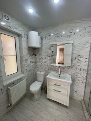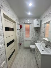 Предлагается к продаже 1/2 часть дома 2017 года постройки в самом центре поселка Краснофлотский, в 3 км от города. Двор раздельный. Общая площадь дома 47 кв.м. Просторная кухня-гостиная 20,7 кв.м., спальня 17,6 кв.м. Санузел совмещенный. Пристроена веранда 5 кв.м. Выполнен качественный ремонт. Материал стен - газоблок, утеплен, обшит сайдингом. Вода - центральная. Отопление - экономичный электрический котел. Двор выложен плиткой, оборудовано парковочное место, установлен навес. За домом огород, сарай, так же растут.