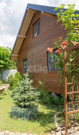 Второй дом - для проживания собственников 88,7 кв.м, 1 этаж. Две спальни,кухня-гостиная (31 кв.м), гардеробная, два сан.узла, терраса, печь-камин; помимо этого есть баня,летняя беседка,мангальная зона,хозяйственное помещение (генераторная, водный накопитель), дровник, декоративные насаждения.