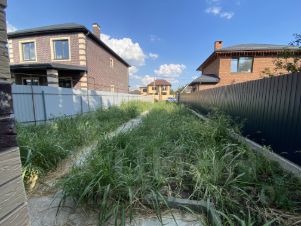 Участок 5 соток земли ИЖС, огорожен по периметру забором из металлопрофиля, заезд для автомобиля и отмостка забетонированы, установлены откатные ворота.