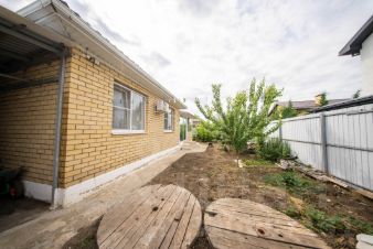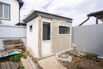 Во дворе дома установлены видеокамеры, есть освещение, розетка, два крана для полива с разных сторон дома. С одной стороны дома большой навес, забетонирован въезд и площадка под две машины, построен сарай и баня (баня внутри не доделана). Въезд для машин оборудован автоматизированными воротами.