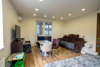 На кухне висит газовый котёл, в кладовой установлен электрический котёл, есть тёплые полы. Плитка на полу в ванной, прихожей и кладовой. На лоджии установлены атермальные стеклопакеты, которые защищают летом от жара, зимой от холода. Во всём доме потолок дополнительно утеплен и подшит фанерой, везде натяжные потолки. Освещение яркое. В комнатах, столовой и кухне можно выбрать степень освещённости. (Внутри дома насчитывается 40 энергосберегающих светильников). В доме установлено три сплитсистемы.