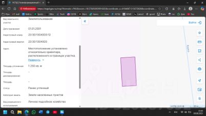 Площадь участка - 1250 квадратных метров. Фасад - 25 метров. Категория земель - земли населённых пунктов. Вид разрешённого использования - личное подсобное хозяйство (то же, что ИЖС).