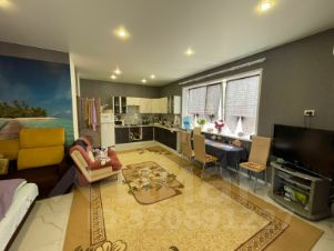 Дом 2: первый этаж 40 кв.м ( включает в себя огромную кухню-гостинную открытой планировки и совместный с/у). Второй этаж так же 40 кв.м (изначально планировался как бильярдная зона- при желании можно сделать жилым этажом). В доме выполнен ремонт. Коммуникации в доме: свет, газ, скважина, септик.