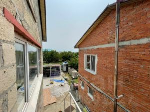 Дом 1: первый этаж 40 кв.м (включает в себя коридор с помещением под гардероб, раздельный с/у, кухня с лестницей, бассейн, баня). Второй этаж 40 кв.м соответственно (включает в себя зал, спальную комнату и гардеробную комнату). Постройка выполнена из кирпича, на ленточном фундаменте. Ширина стен- 40 см. Коммуникации заведены: скважина, электричество, септик. Газ заводят на данный момент в дом. В доме выполнен ремонт для проживания/отдыха. Изначально данное строение планировалось сдавать посуточно как дом отдыха (в законченном виде есть возможность сдавать данный дом в среднем за 20 т.р/сутки).