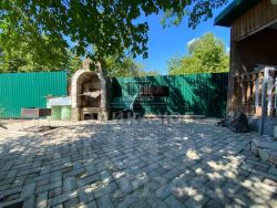 По всему периметру двора сделаны капитальные навесы . Двор выложен плиткой,залита площадка под бассейн.
