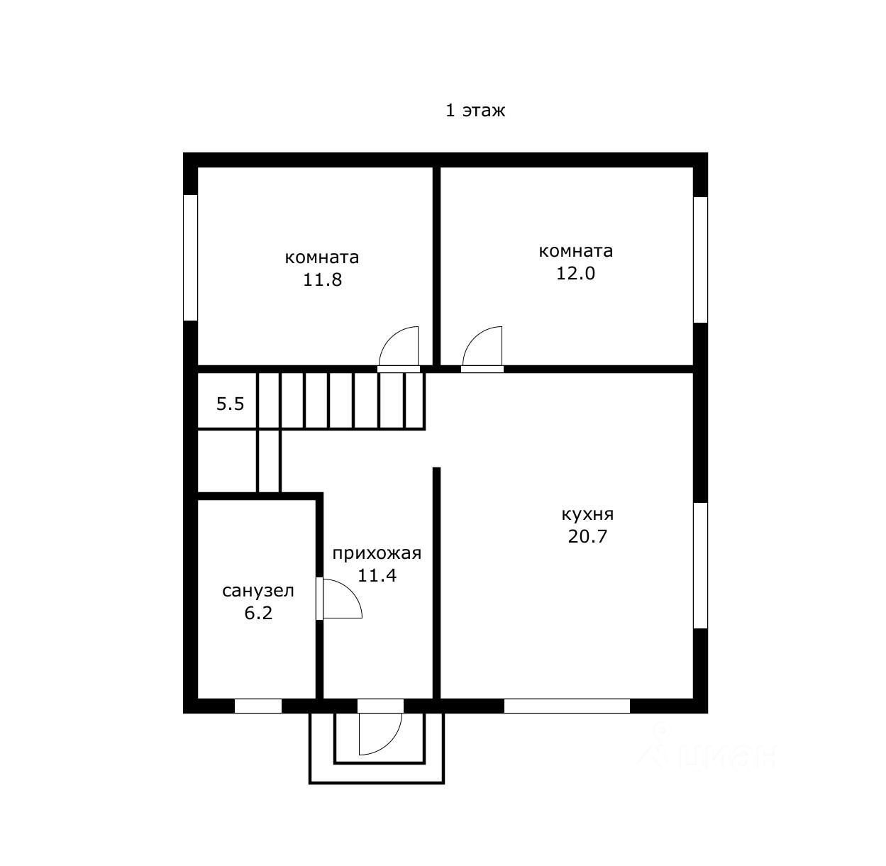 1 этаж — 2 спальни, кухня-гостиная