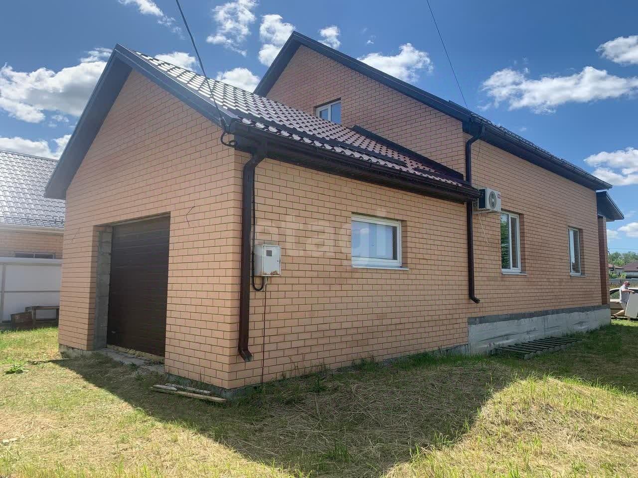 Это двухэтажное здание построено из блока с кирпичной облицовкой и утеплением эковатой, что обеспечивает высокую энергоэффективность. Фундамент ленточный армированный, высотой 80 см, гарантирует устойчивость конструкции. К дому пристроен гараж с подъемными воротами.