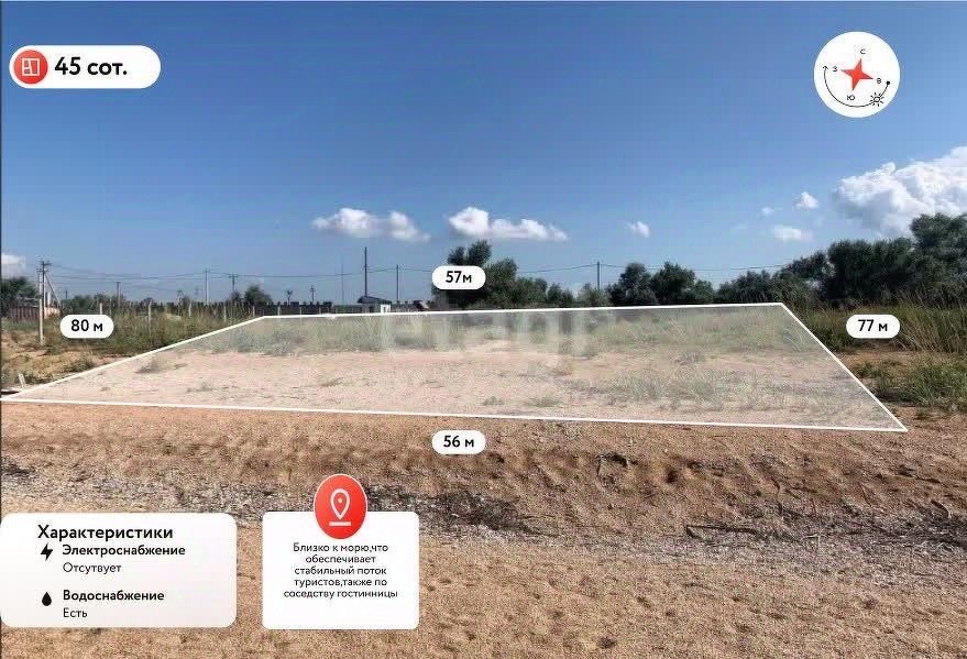 Земельный участок площадью 45 соток расположен в поселке Пересыпь на первой линии Азовского моря, что делает его привлекательным для коммерческого использования — строительства базы отдыха, гостевого дома или мини-отеля.