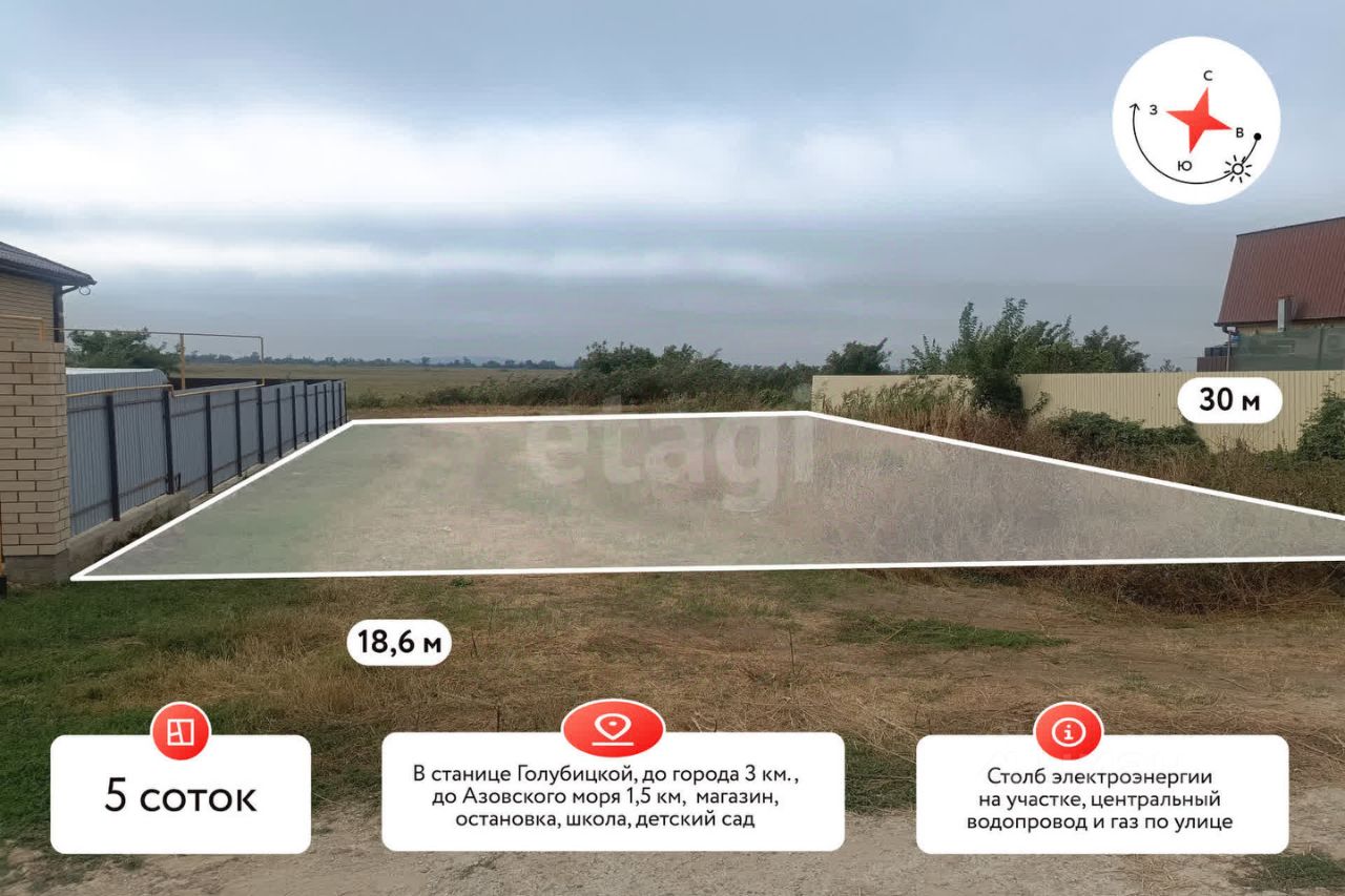 Продается уникальный участок в живописной станице Голубицкой площадью 5 соток, который идеально подходит для строительства вашего дома мечты! Участок находится в зоне с разрешенным использованием для индивидуального жилищного строительства, что открывает перед вами широкие возможности для реализации ваших идей.