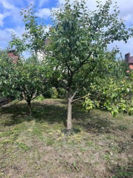 Участок правильной формы, фасад 18 метров, длина 39 метров. На участке растут плодовые , хвойные деревья, берёзы.