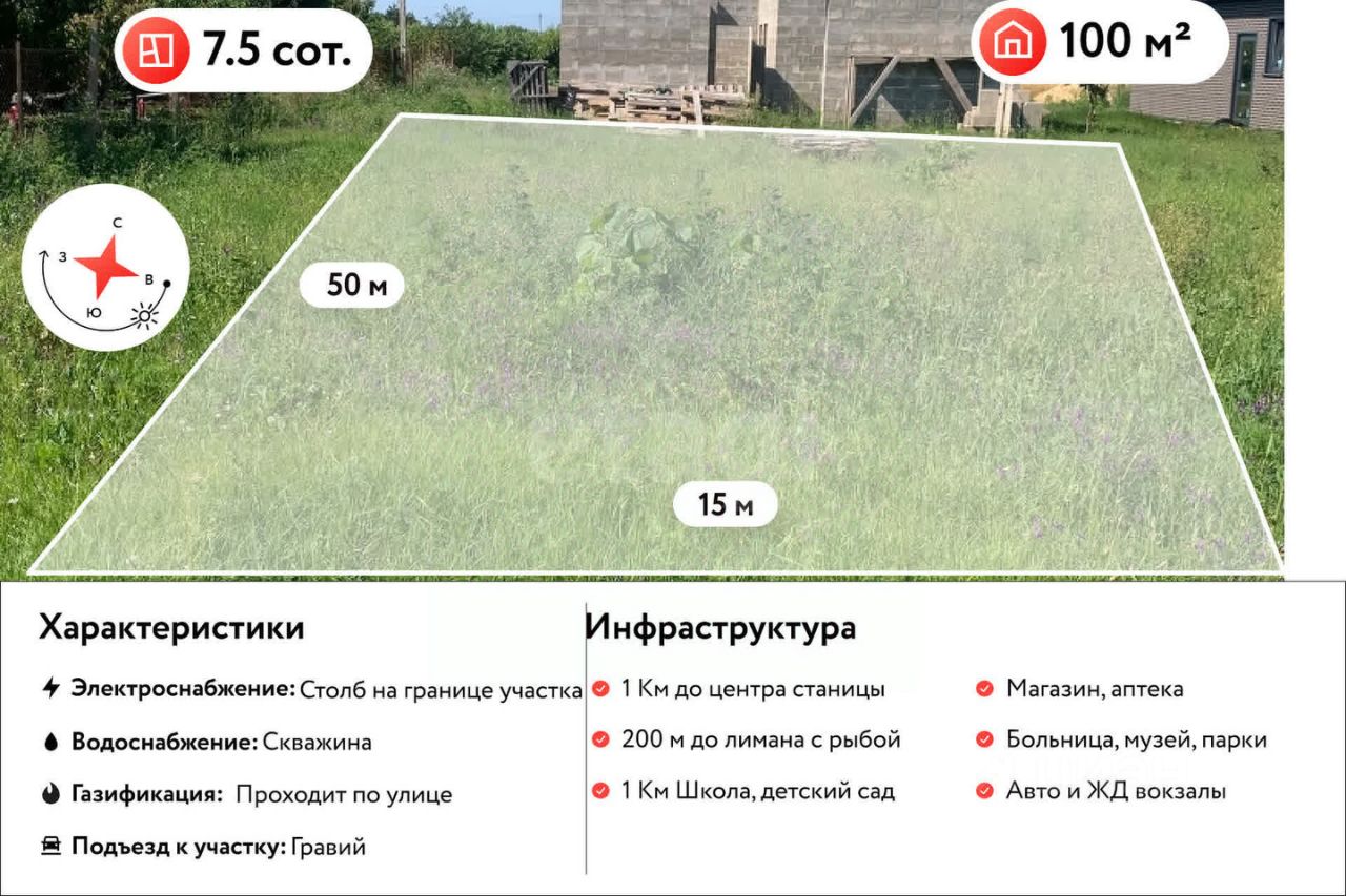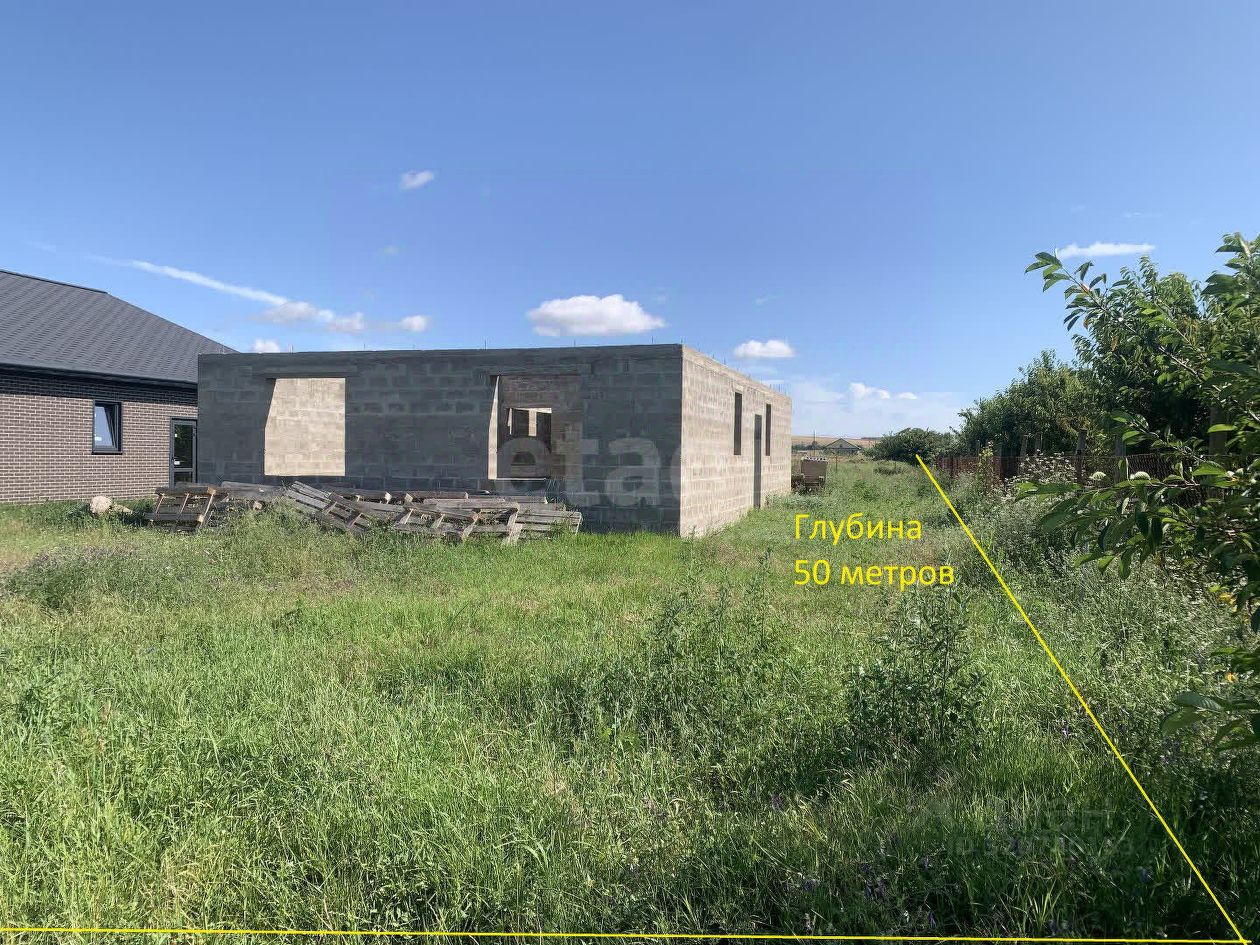 В продаже отличный земельный участок с незавершённым строительством, дом 100 кв.м. Участок 7.5 соток в активно застраивающемся районе станицы.