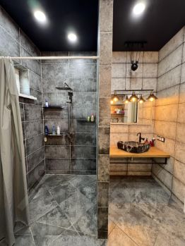 Продам жилой дом, одноэтажный, площадью 90 м. Три комнаты и кухня гостиная. Санузел совместный. Две комнаты нуждаются в ремонте (сейчас там инструменты )Из Кухни гостиной выход на террасу. Отопление через газовый баллон. , можно через электричество. Газ по меже . Вода и скважины автоматически подается через фильтры в дом. Тёплые полы, грамотная электроразводка,, Проходной свет, утепление плиты перекрытия 20 см. Покупал у застройщика, без стяжки, прокладывал тёплые полы полностью коллекторную систему отопления, электроразводка под себя, сделан частичный ремонт. Установлена кухня мечты и санузел мечты)